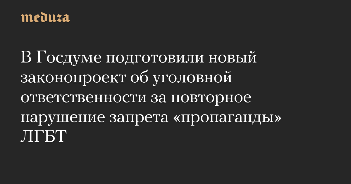 В Госдуме подготовили новый законопроект об уголовной ответственности за повторное нарушение запрета «пропаганды» ЛГБТ