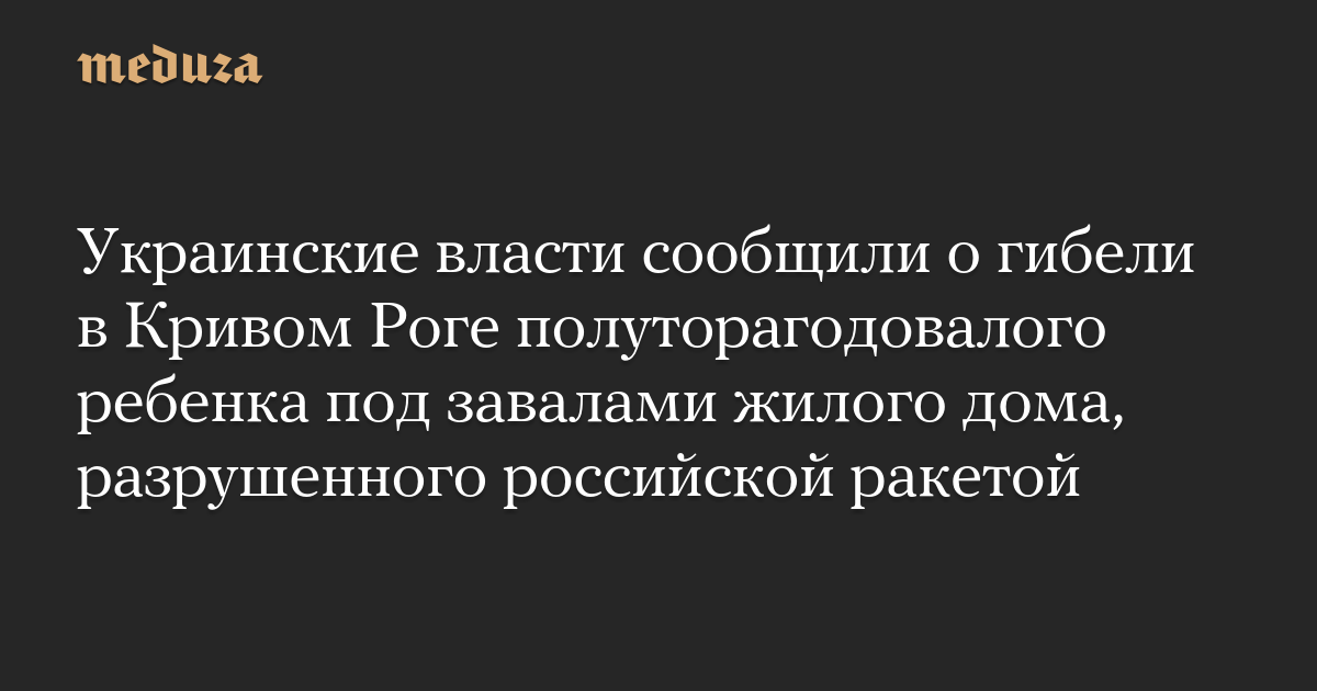 Украинские власти сообщили о гибели в Кривом Роге полуторагодовалого ребенка под завалами жилого дома, разрушенного российской ракетой