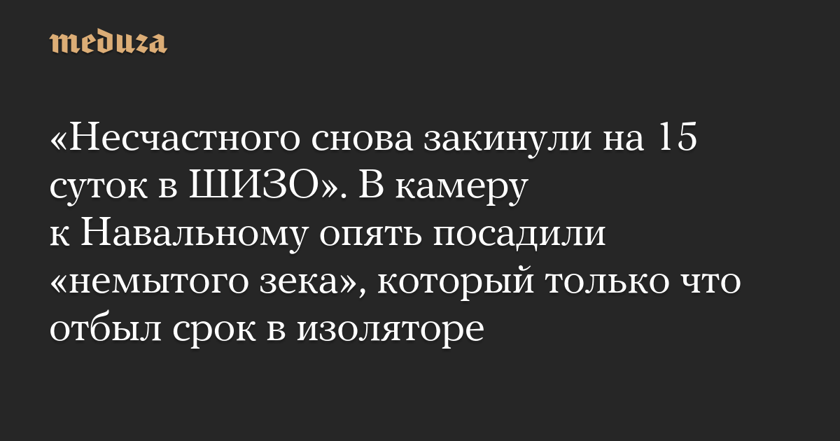 «Несчастного снова закинули на 15 суток в ШИЗО». В камеру к Навальному опять посадили «немытого зека», который только что отбыл срок в изоляторе