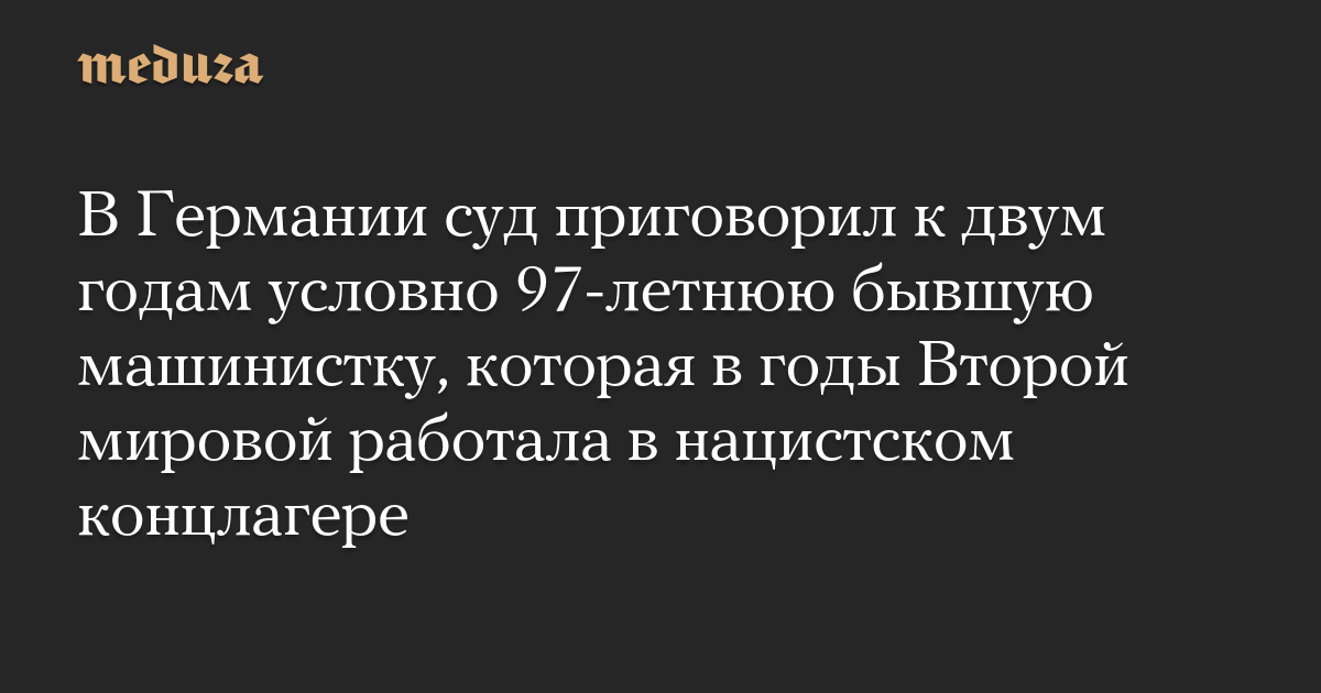 В Германии суд приговорил к двум годам условно 97-летнюю бывшую машинистку, которая в годы Второй мировой работала в нацистском концлагере