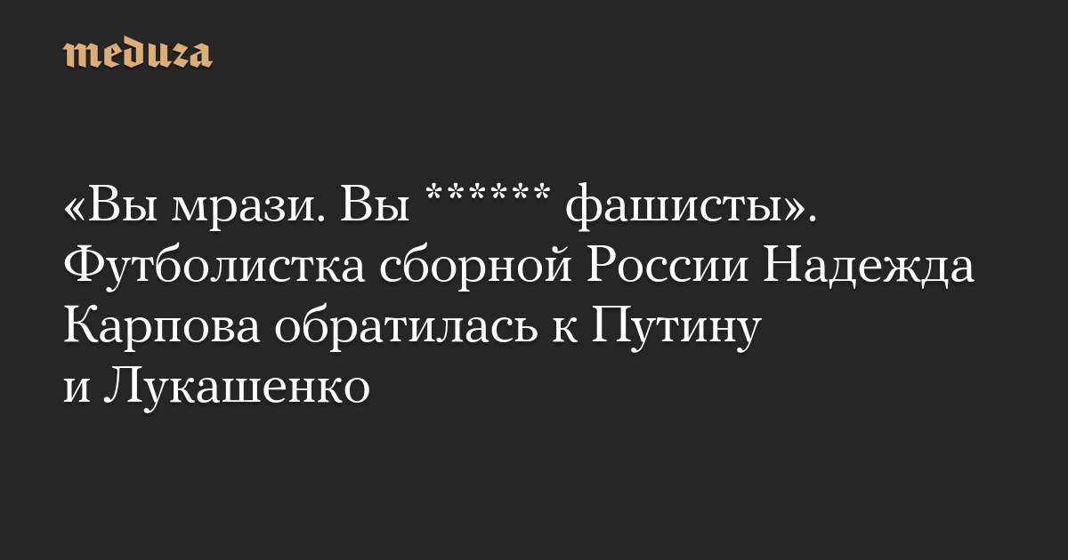«Вы мрази. Вы ****** фашисты». Футболистка сборной России Надежда Карпова обратилась к Путину и Лукашенко