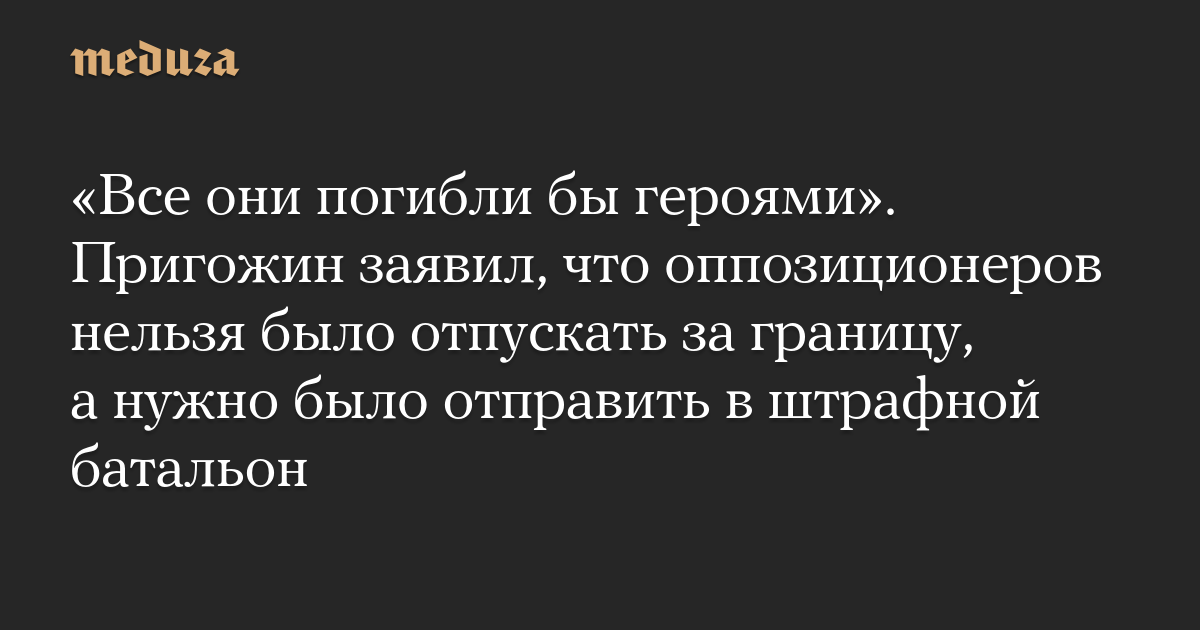 «Все они погибли бы героями». Пригожин заявил, что оппозиционеров нельзя было отпускать за границу, а нужно было отправить в штрафной батальон