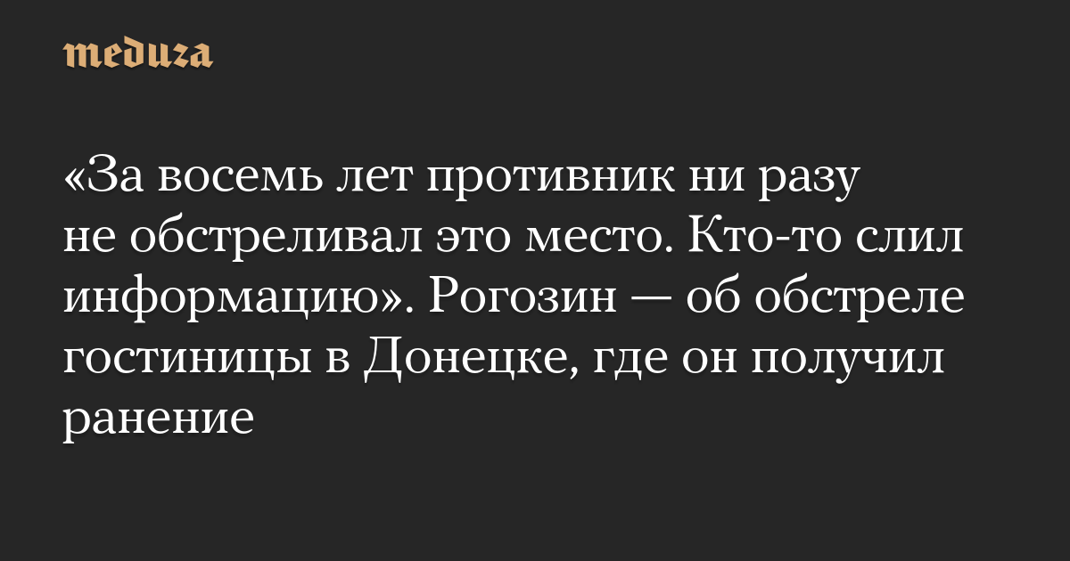 «За восемь лет противник ни разу не обстреливал это место. Кто-то слил информацию». Рогозин — об обстреле гостиницы в Донецке, где он получил ранение