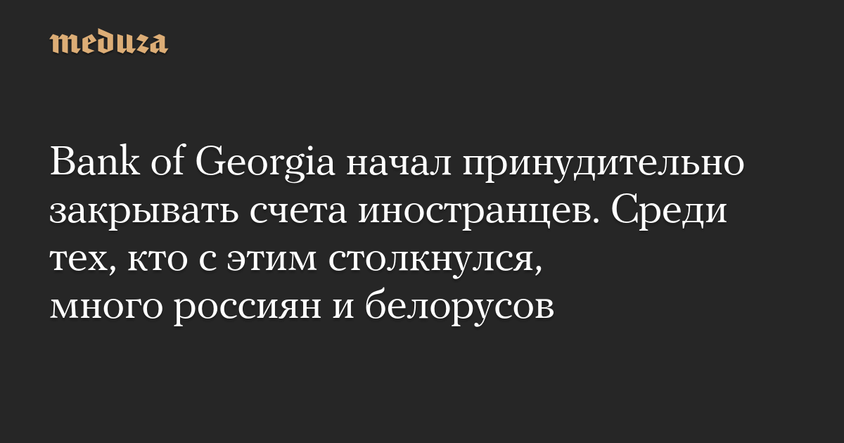 Крупнейший банк Грузии Bank of Georgia (BOG) начал принудительно закрывать счета иностранных граждан без объяснения причин. На данный момент с этим столкнулись десятки клиентов, многие из которых являются гражданами России и Беларуси, сообщает блогер Николай Левшиц.
