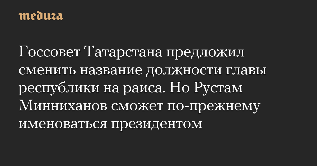 Госсовет Татарстана предложил сменить название должности главы республики на раиса. Но Рустам Минниханов сможет по-прежнему именоваться президентом