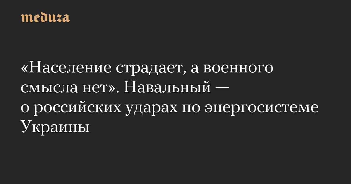 «Население страдает, а военного смысла нет». Навальный — о российских ударах по энергосистеме Украины