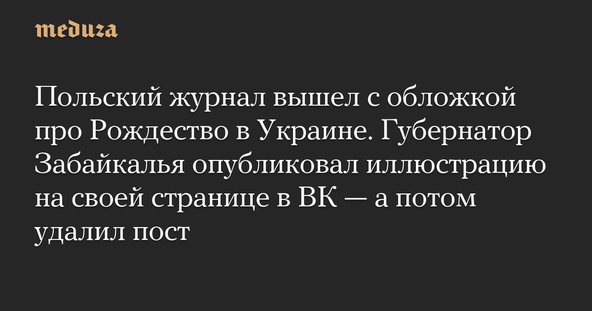 Польский журнал вышел с обложкой про Рождество в Украине. Губернатор Забайкалья опубликовал иллюстрацию на своей странице в ВК — а потом удалил пост