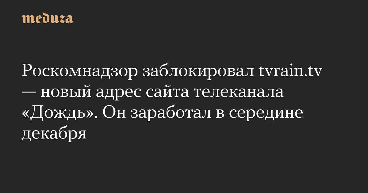 Роскомнадзор заблокировал tvrain.tv — новый адрес сайта телеканала «Дождь». Он заработал в середине декабря