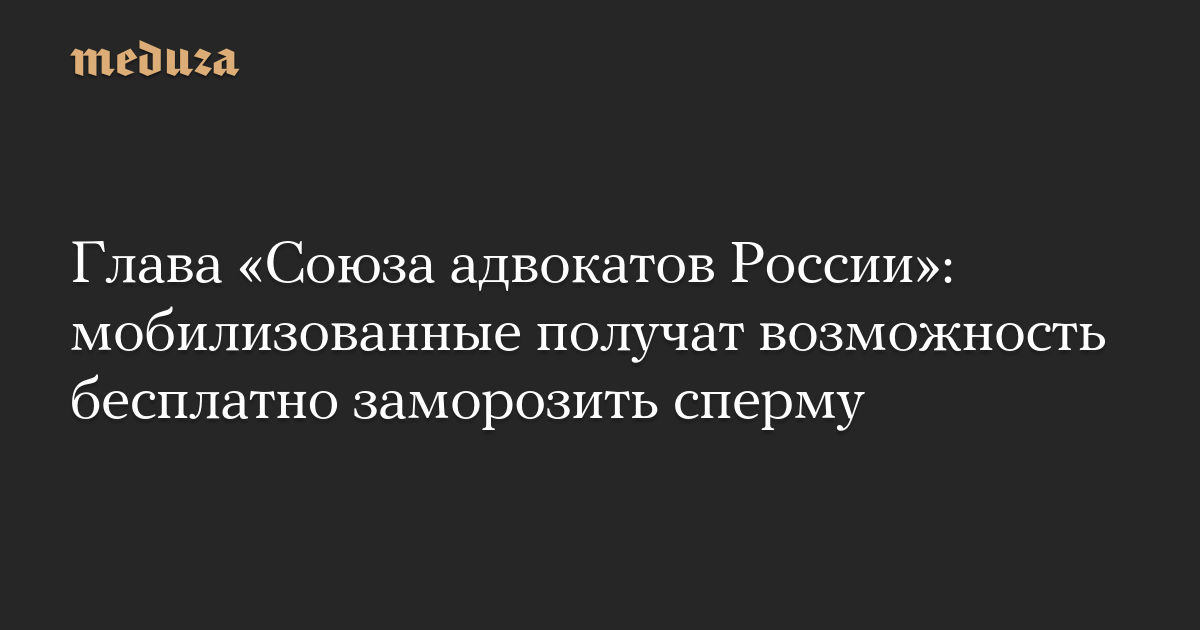Глава «Союза адвокатов России»: мобилизованные получат возможность бесплатно заморозить сперму