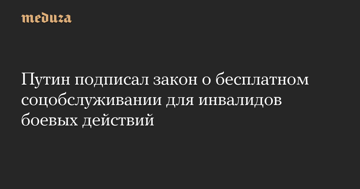 Путин подписал закон о бесплатном соцобслуживании для инвалидов боевых действий