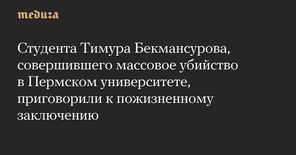 Пермский краевой суд приговорил к пожизненному заключению Тимура Бекмансурова, обвиняемого в совершении массового убийства в Пермском университете.