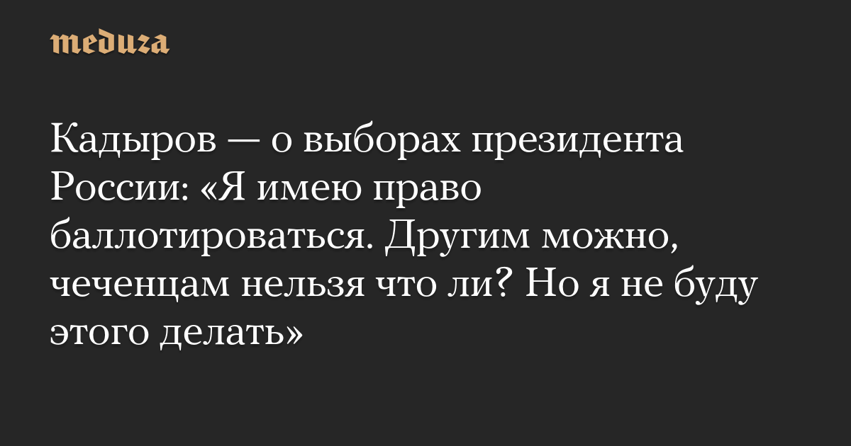 Кадыров — о выборах президента России: «Я имею право баллотироваться. Другим можно, чеченцам нельзя что ли? Но я не буду этого делать»