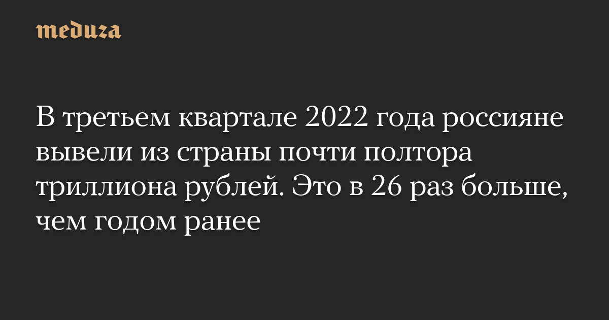 В третьем квартале 2022 года россияне вывели из страны почти полтора триллиона рублей. Это в 26 раз больше, чем годом ранее