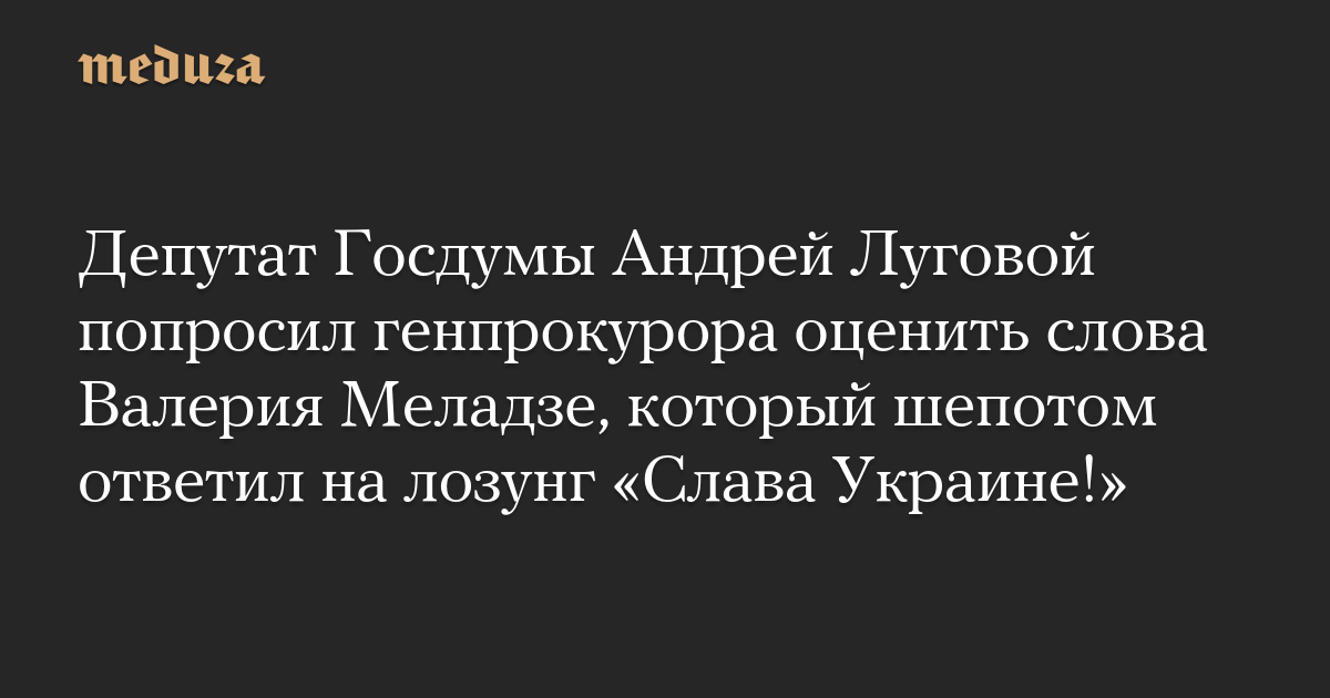 Депутат Госдумы Андрей Луговой попросил генпрокурора оценить слова Валерия Меладзе, который шепотом ответил на лозунг «Слава Украине!»