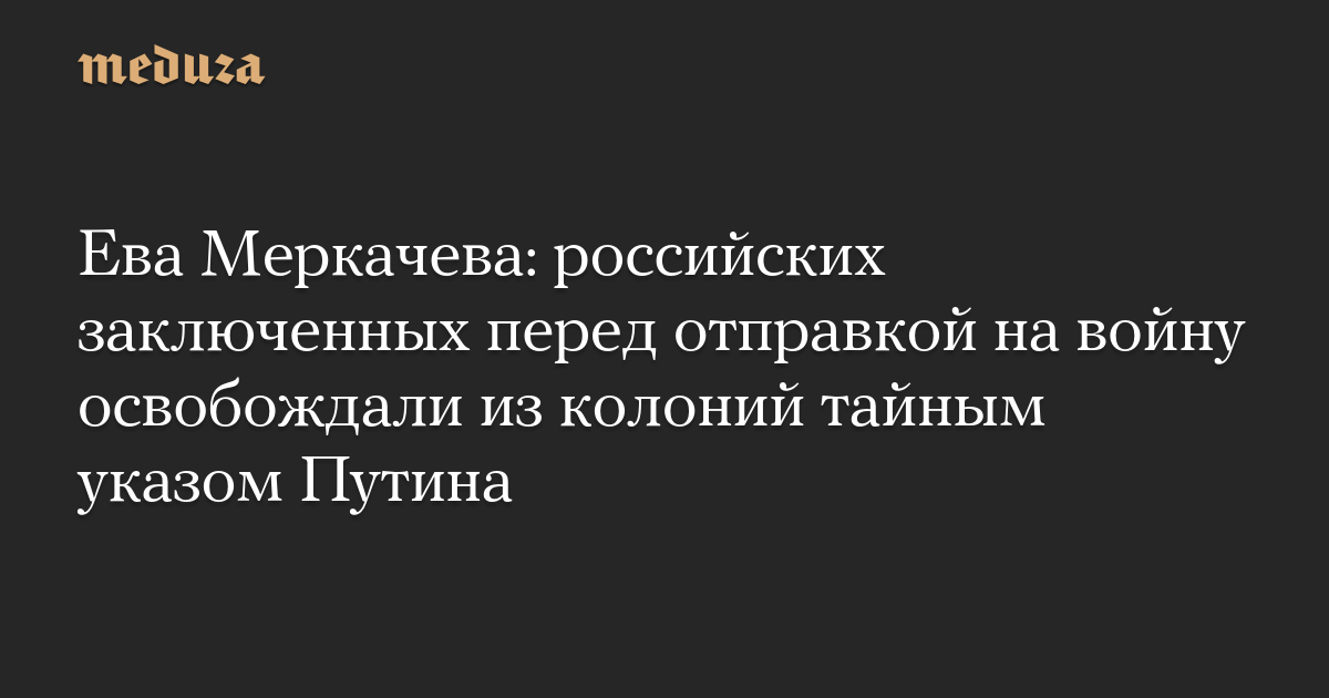 Ева Меркачева: российских заключенных перед отправкой на войну освобождали из колоний тайным указом Путина
