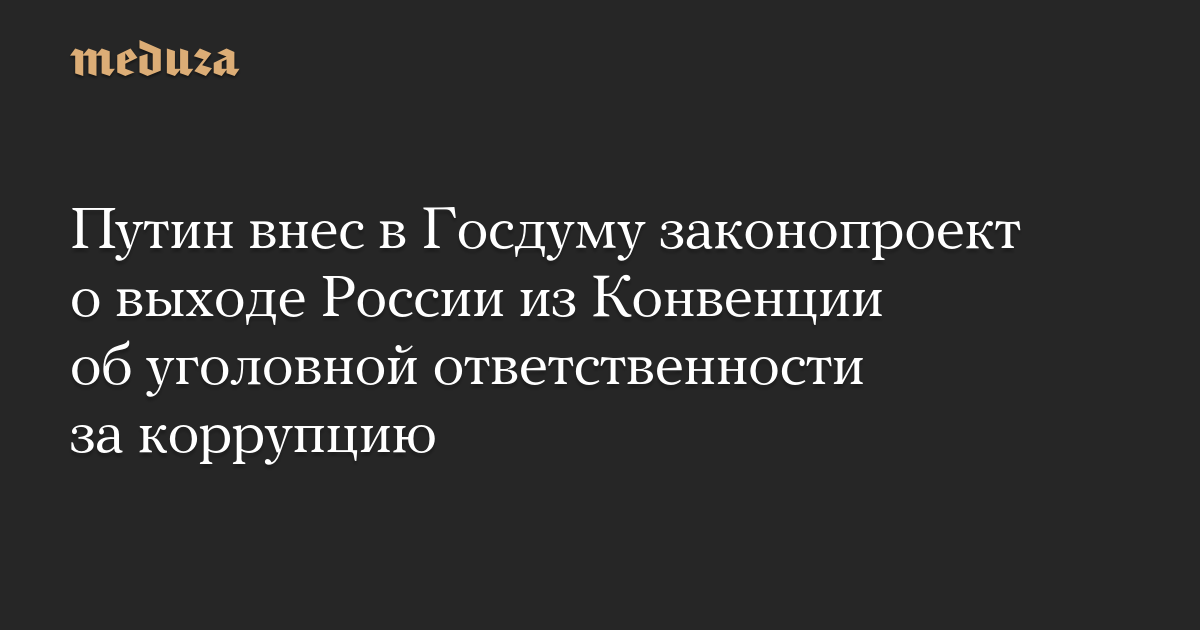 Путин внес в Госдуму законопроект о выходе России из Конвенции об уголовной ответственности за коррупцию
