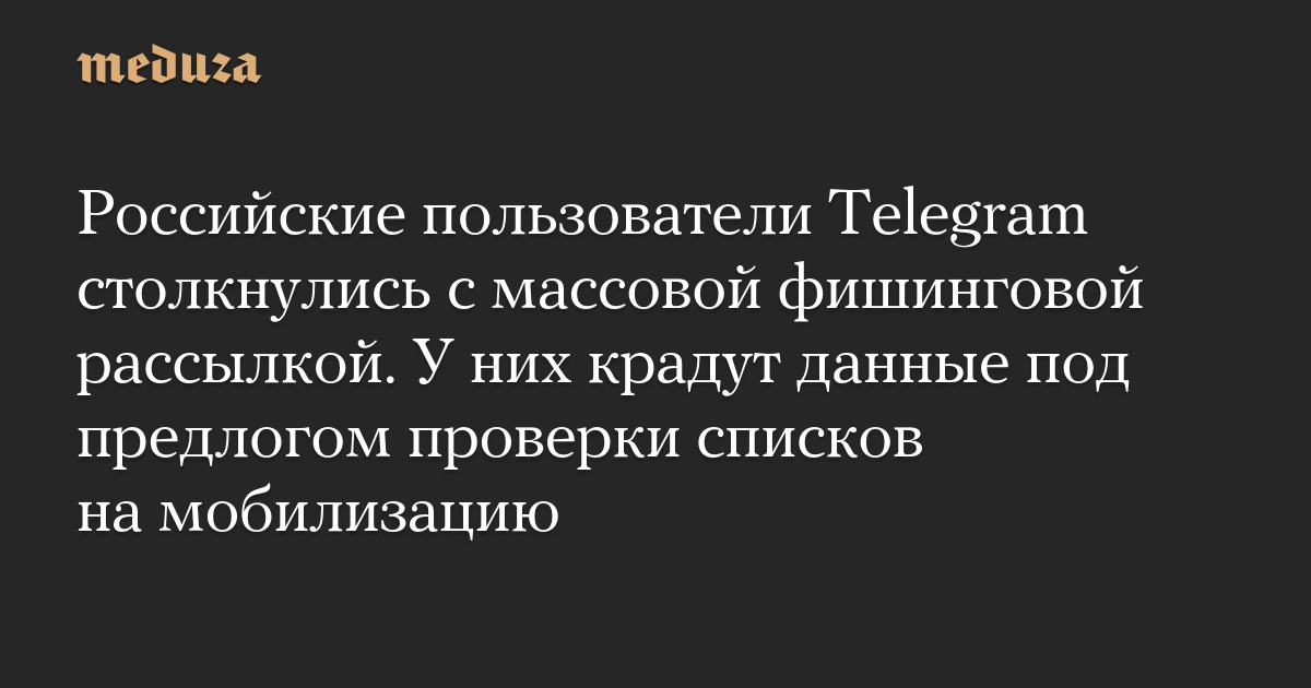 Российские пользователи Telegram столкнулись с массовой фишинговой рассылкой. У них крадут данные под предлогом проверки списков на мобилизацию