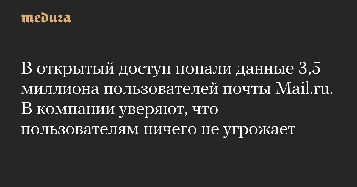 В открытый доступ попали данные 3,5 миллиона пользователей почты Mail.ru. В компании уверяют, что пользователям ничего не угрожает