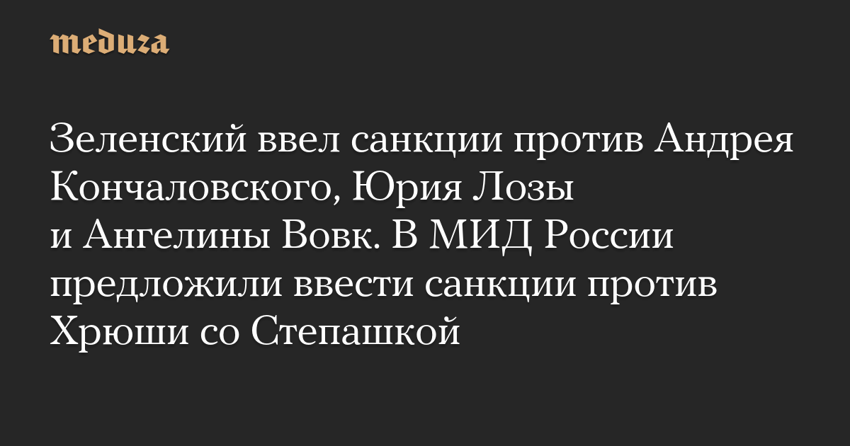 Зеленский ввел санкции против Андрея Кончаловского, Юрия Лозы и Ангелины Вовк. В МИД России предложили ввести санкции против Хрюши со Степашкой