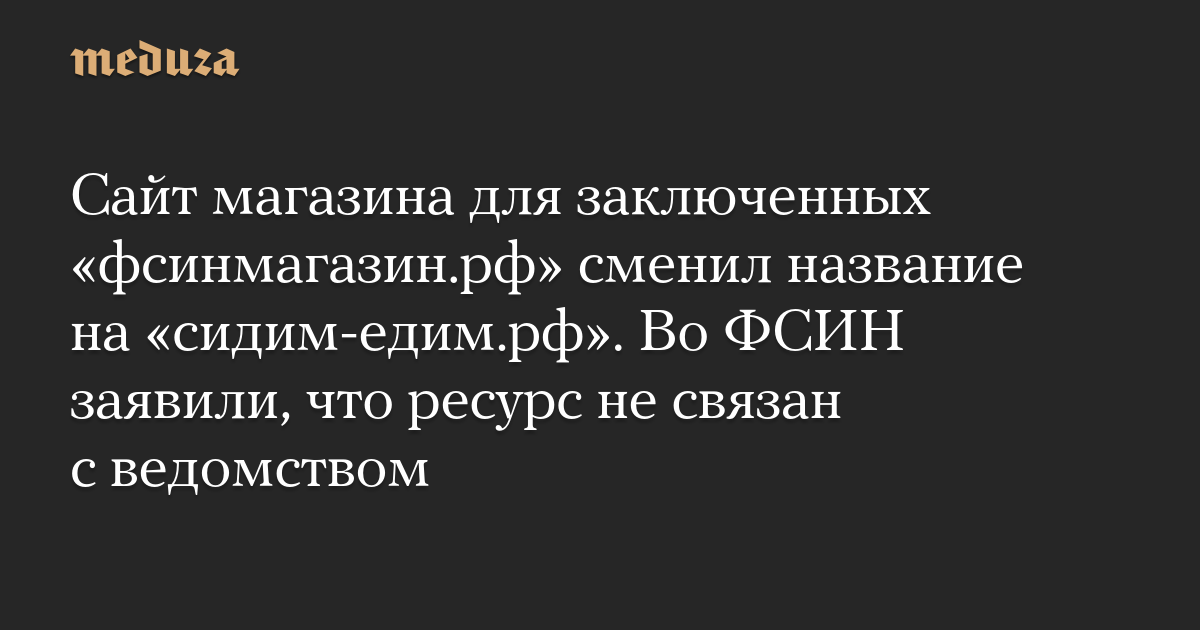 Сайт онлайн-магазина, который продает продукты и непродовольственные товары для заключенных, объявил о «ребрендинге названия» с «фсинмагазин.рф» на «сидим-едим.рф». Внимание на это обратили российские телеграм-каналы и СМИ.