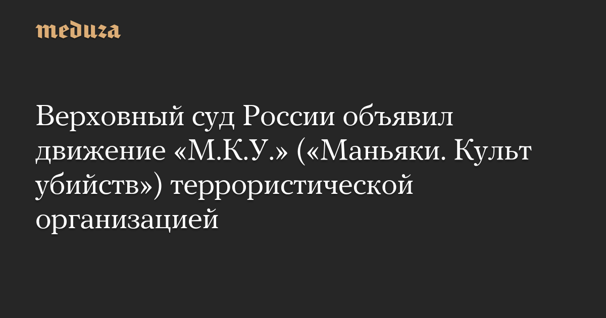 Верховный суд России объявил движение «М.К.У.» («Маньяки. Культ убийств») террористической организацией