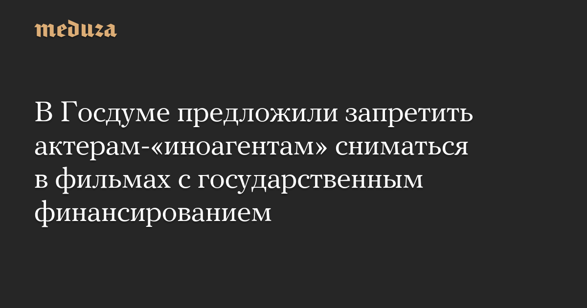 В Госдуме предложили запретить актерам-«иноагентам» сниматься в фильмах с государственным финансированием