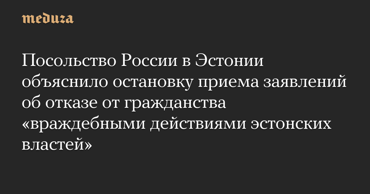 Посольство России в Эстонии временно прекратило принимать заявления о выходе из российского гражданства из-за «враждебных действий эстонских властей». Такое объяснение дипмиссия предоставила в ответ на запрос РБК.