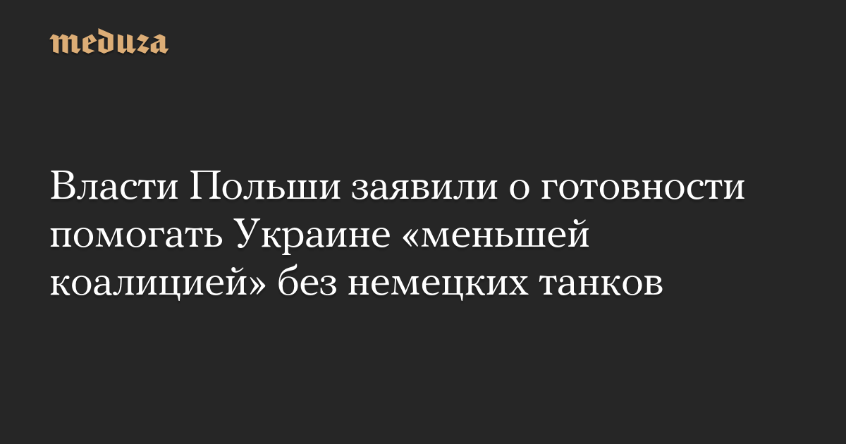 Власти Польши заявили о готовности помогать Украине «меньшей коалицией» без немецких танков