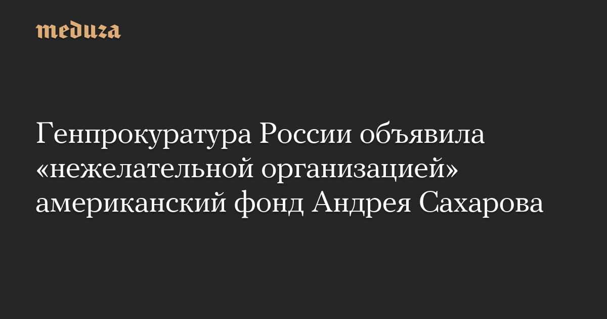 Генпрокуратура России объявила «нежелательной» американскую неправительственную организацию Фонд Андрея Сахарова (The Andrei Sakharov foundation). Об этом сообщается на сайте ведомства.