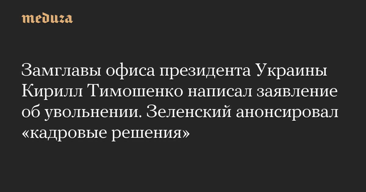 Замглавы офиса президента Украины Кирилл Тимошенко подал в отставку. Зеленский анонсировал «кадровые решения»