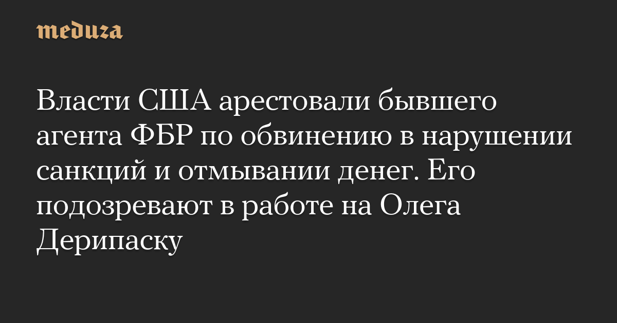 Власти США арестовали бывшего агента ФБР по обвинению в нарушении санкций и отмывании денег. Его подозревают в работе на Олега Дерипаску