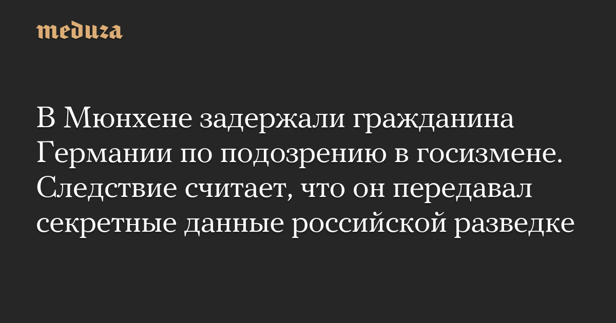 В Мюнхене задержали гражданина Германии по подозрению в госизмене. Следствие считает, что он передавал секретные данные российской разведке