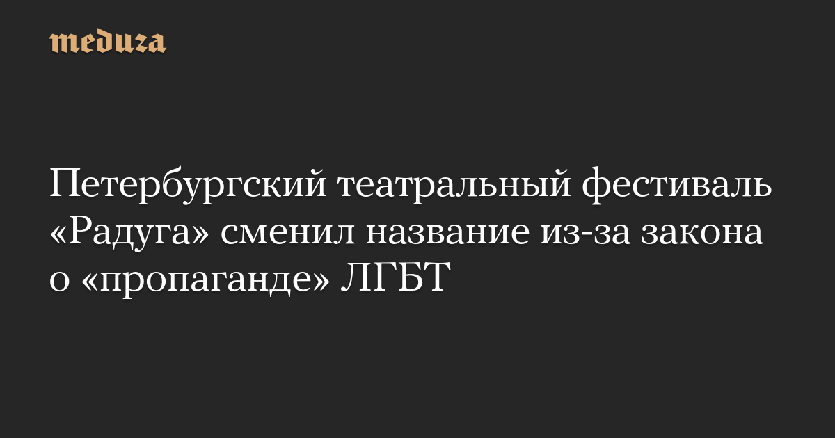 Петербургский театральный фестиваль «Радуга» сменил название из-за закона о «пропаганде» ЛГБТ