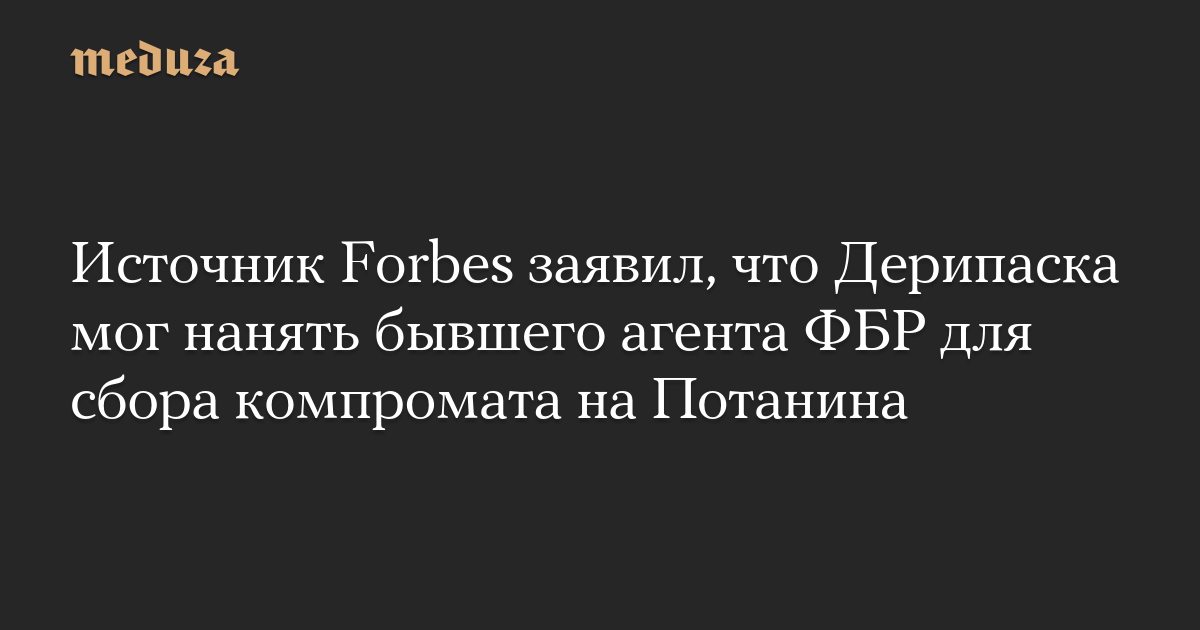 Источник Forbes заявил, что Дерипаска мог нанять бывшего агента ФБР для сбора компромата на Потанина