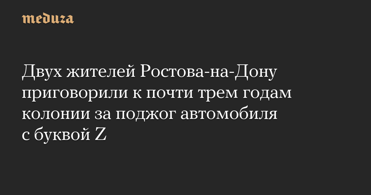 Двух жителей Ростова-на-Дону приговорили к почти трем годам колонии за поджог автомобиля с буквой Z