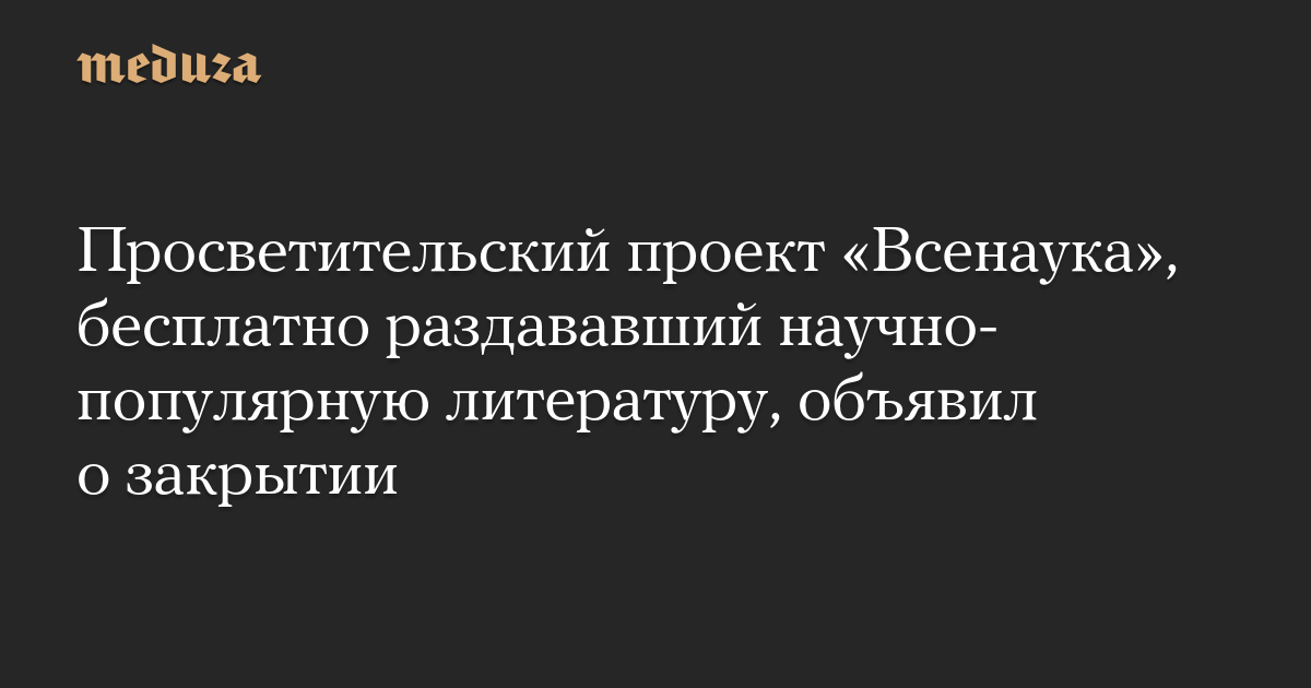 Просветительский проект «Всенаука», бесплатно раздававший научно-популярную литературу, объявил о закрытии