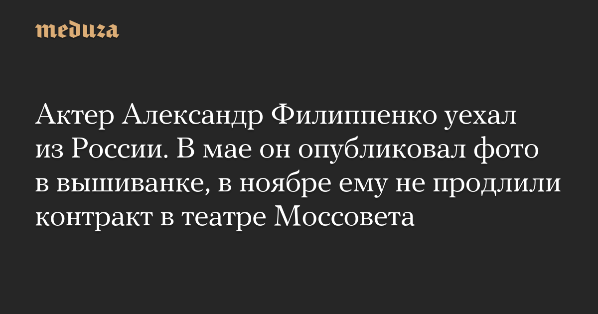 Актер Александр Филиппенко уехал из России. В мае он опубликовал фото в вышиванке, в ноябре ему не продлили контракт в театре Моссовета