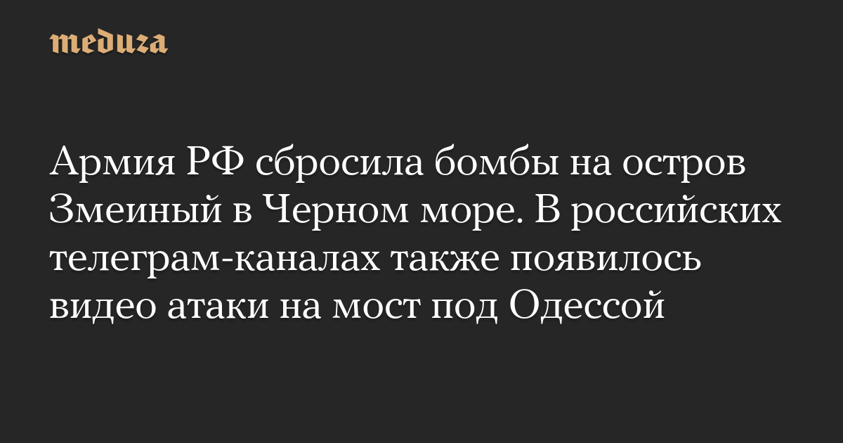 Армия РФ сбросила бомбы на остров Змеиный в Черном море. В российских телеграм-каналах также появилось видео атаки на мост под Одессой