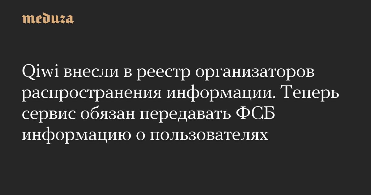 Qiwi внесли в реестр организаторов распространения информации. Теперь сервис обязан передавать ФСБ информацию о пользователях
