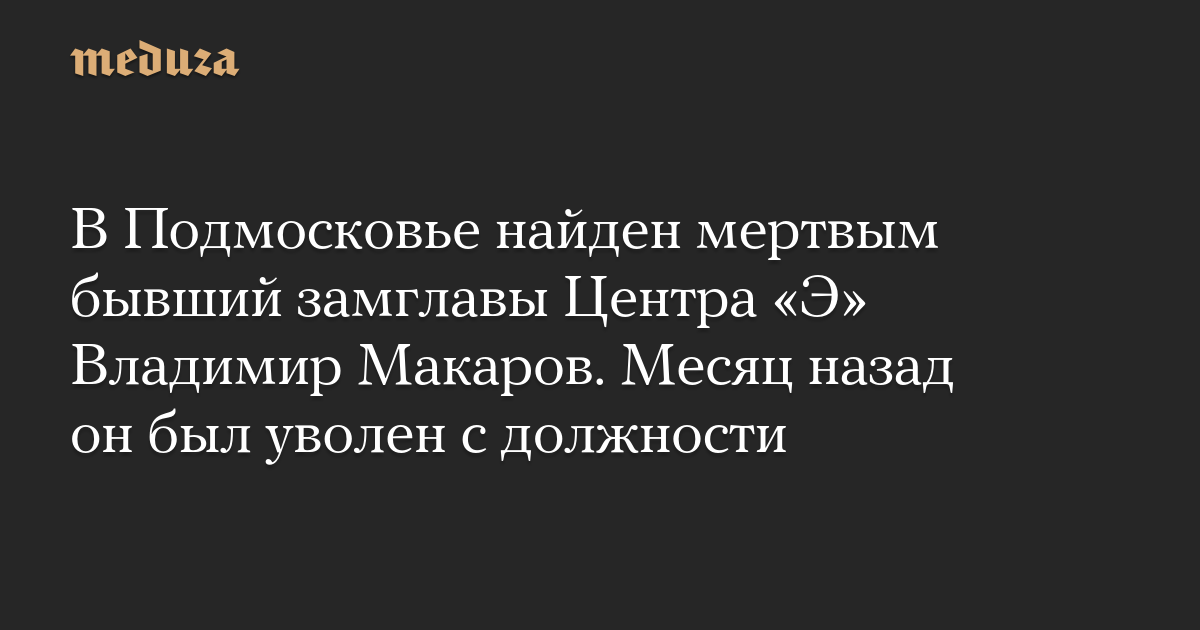 В подмосковной деревне Голиково найден мертвым бывший заместитель начальника главного управления МВД РФ по борьбе с экстремизмом (Центр «Э») Владимир Макаров. Об этом сообщают ТАСС и «Московский комсомолец». Официально эта информация не подтверждена.