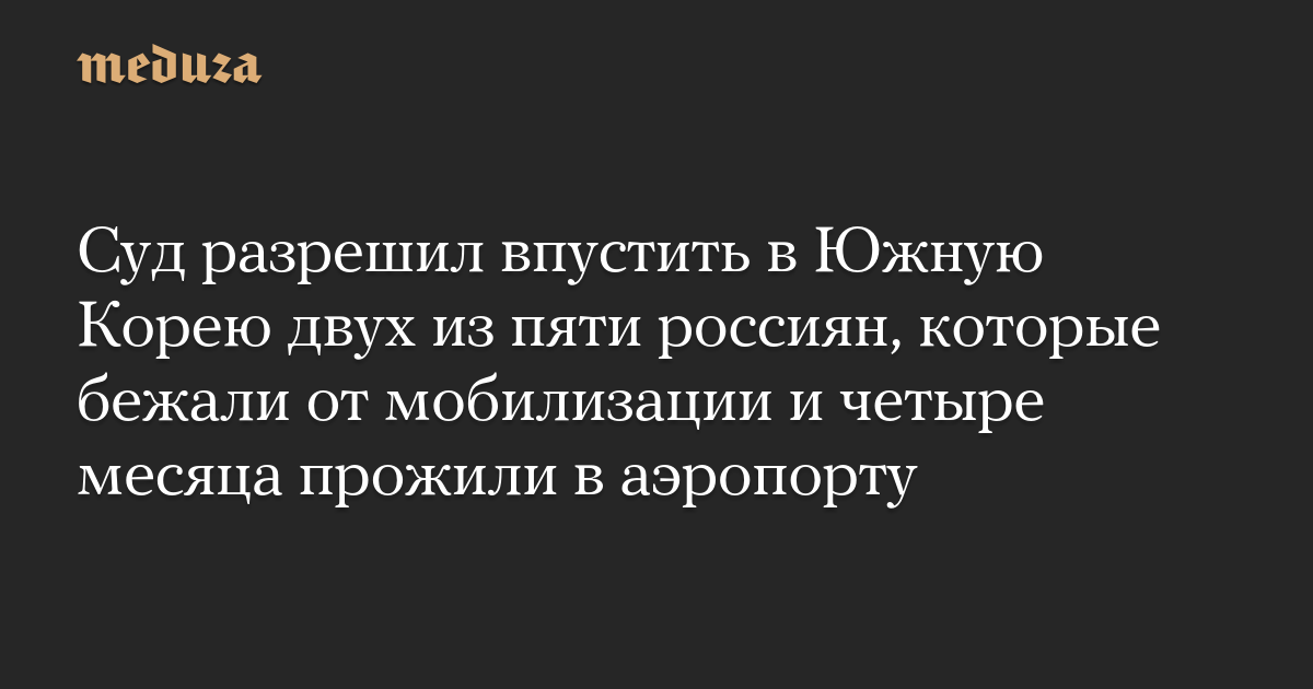 Суд разрешил впустить в Южную Корею двух из пяти россиян, которые бежали от мобилизации и четыре месяца прожили в аэропорту
