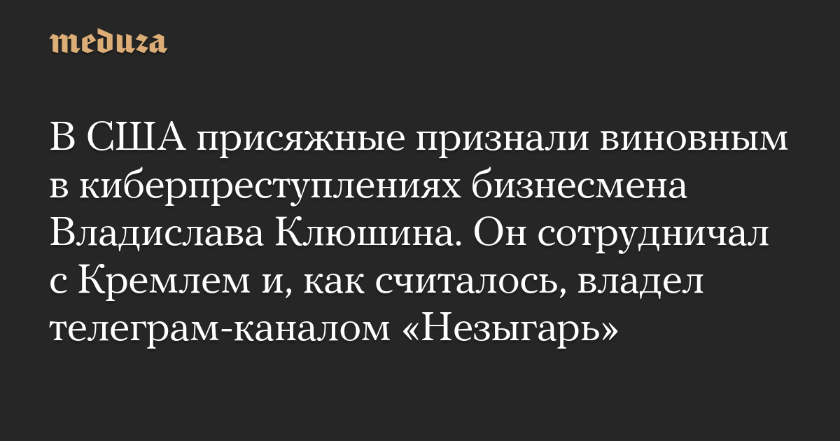 В США присяжные признали виновным в киберпреступлениях бизнесмена Владислава Клюшина. Он сотрудничал с Кремлем и, как считалось, владел телеграм-каналом «Незыгарь»