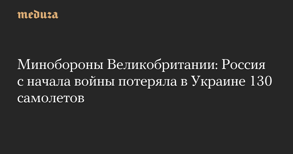 Министерство обороны Великобритании в ежедневном обзоре ситуации в Украине пишет, что российские войска с начала полномасштабного вторжения потеряли около 130 самолетов.