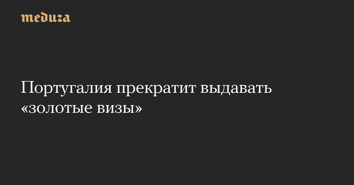 Правительство Португалии решило закрыть программу Golden Visa Portugal, по которой иностранцы могли получить вид на жительство в обмен на инвестиции. Об этом после заседания правительства объявил премьер-министр Португалии Антониу Кошта, сообщает Publico.