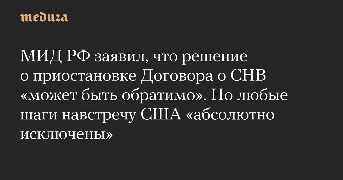 МИД РФ заявил, что решение о приостановке Договора о СНВ «может быть обратимо». Но любые шаги навстречу США «абсолютно исключены»