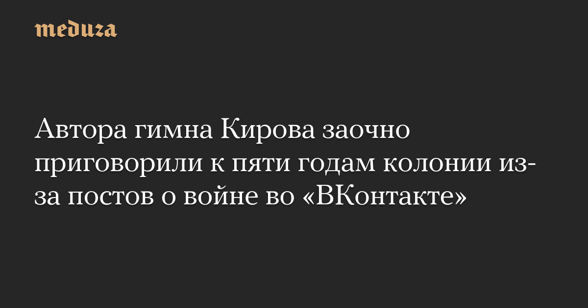 Автора гимна Кирова заочно приговорили к пяти годам колонии из-за постов о войне во «ВКонтакте»