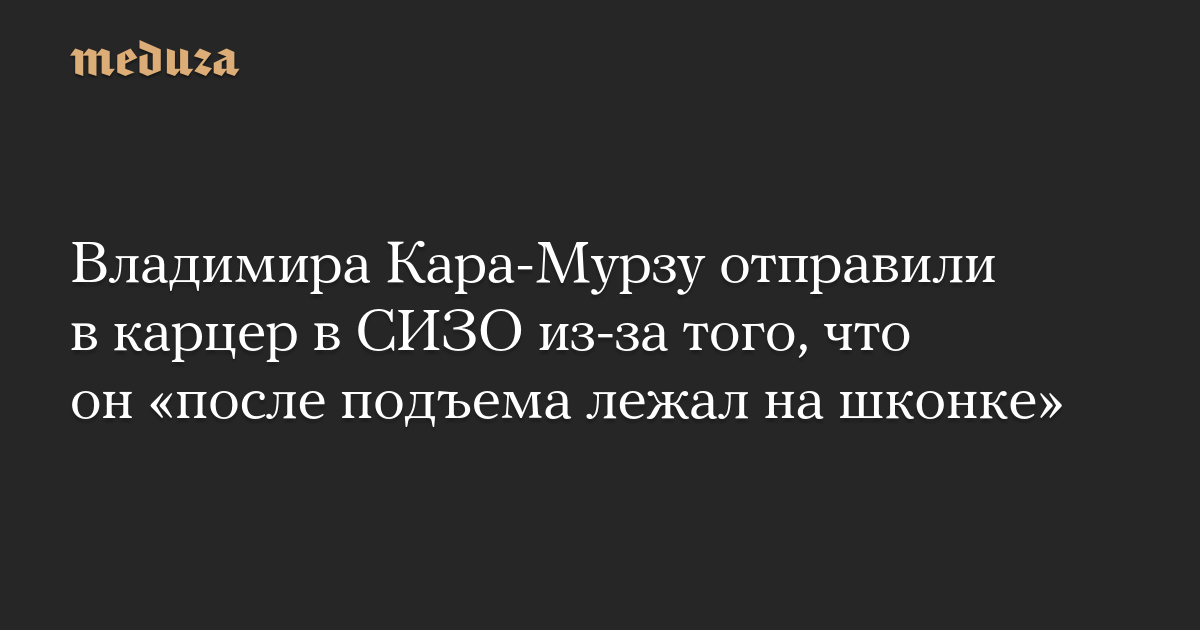 Причиной отправки в карцер стало то, что Кара-Мурза «после подъема лежал на шконке». Политик должен будет провести в карцере четыре дня.