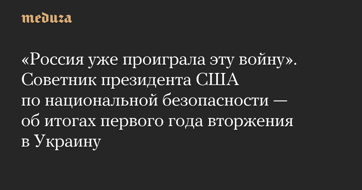 «Россия уже проиграла эту войну». Советник президента США по национальной безопасности — об итогах первого года вторжения в Украину