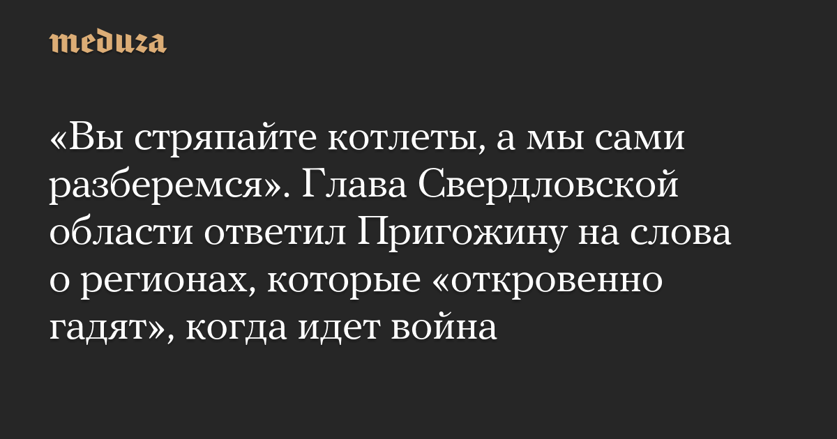 «Вы стряпайте котлеты, а мы сами разберемся». Глава Свердловской области ответил Пригожину на слова о регионах, которые «откровенно гадят», когда идет война