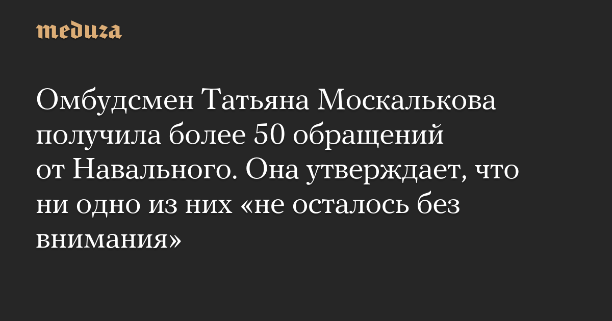 Омбудсмен Татьяна Москалькова получила более 50 обращений от Навального. Она утверждает, что ни одно из них «не осталось без внимания»
